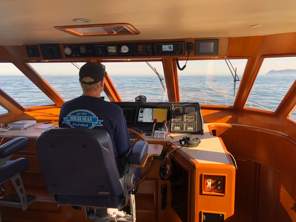 Waters turned rougher over night, with rain, fog and sloppy seas rolling in. A possible derelict trap that was caught in the prop caused a midnight alarm and crew had to idle Kama Hele, use underwater lights and hang over the swim step to see if they were trailing wire. Using reverse to unwind anything that might be attached ended the unusual vibration, and the tired crew carried on. They expect to reach the Columbia River Bar about 1:00 PM, refuel, tie up, eat well and overnight in historic Astoria.