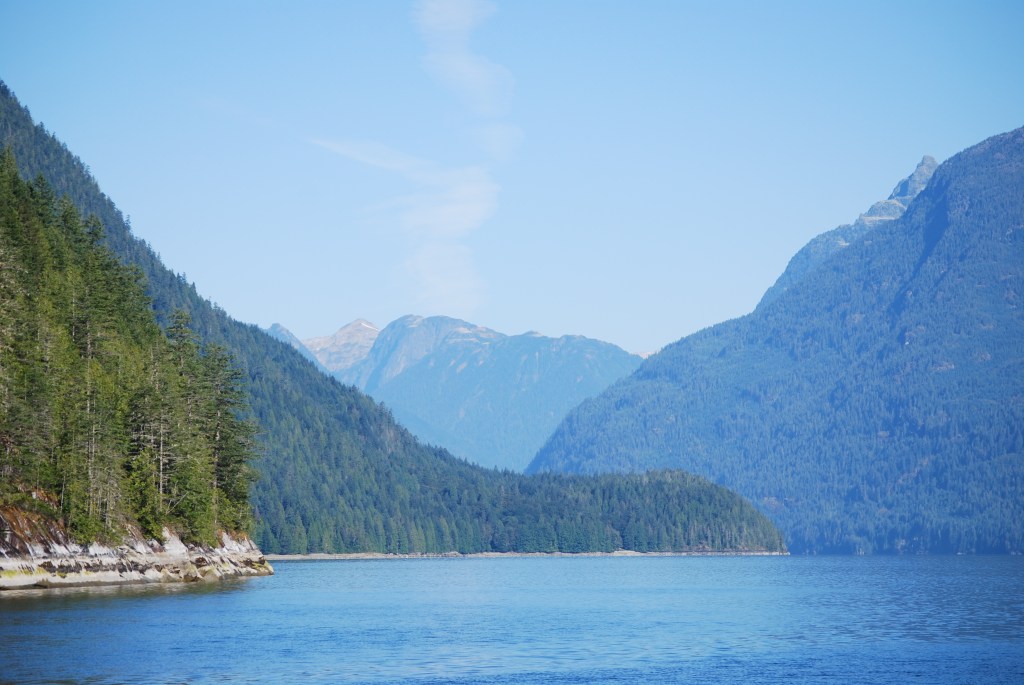 Before a vessel can reach Princess Louisa Inlet, it must run the gauntlet at Malibu Rapids. This short but turbulent passage requires a mathematical equation from a tide table almost 65 miles away to approximate safe transit time, so we calculated and recalculated before determining the right time. Certain we had the correct window, we left at dawn, meeting the sun in Agamemnon Channel.