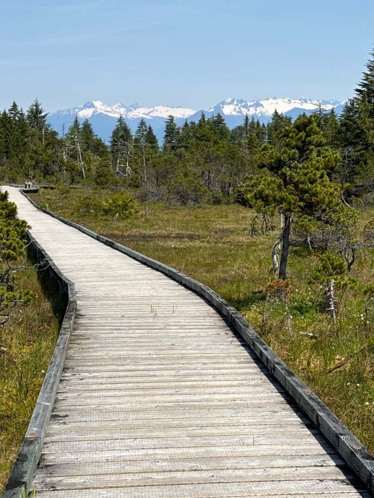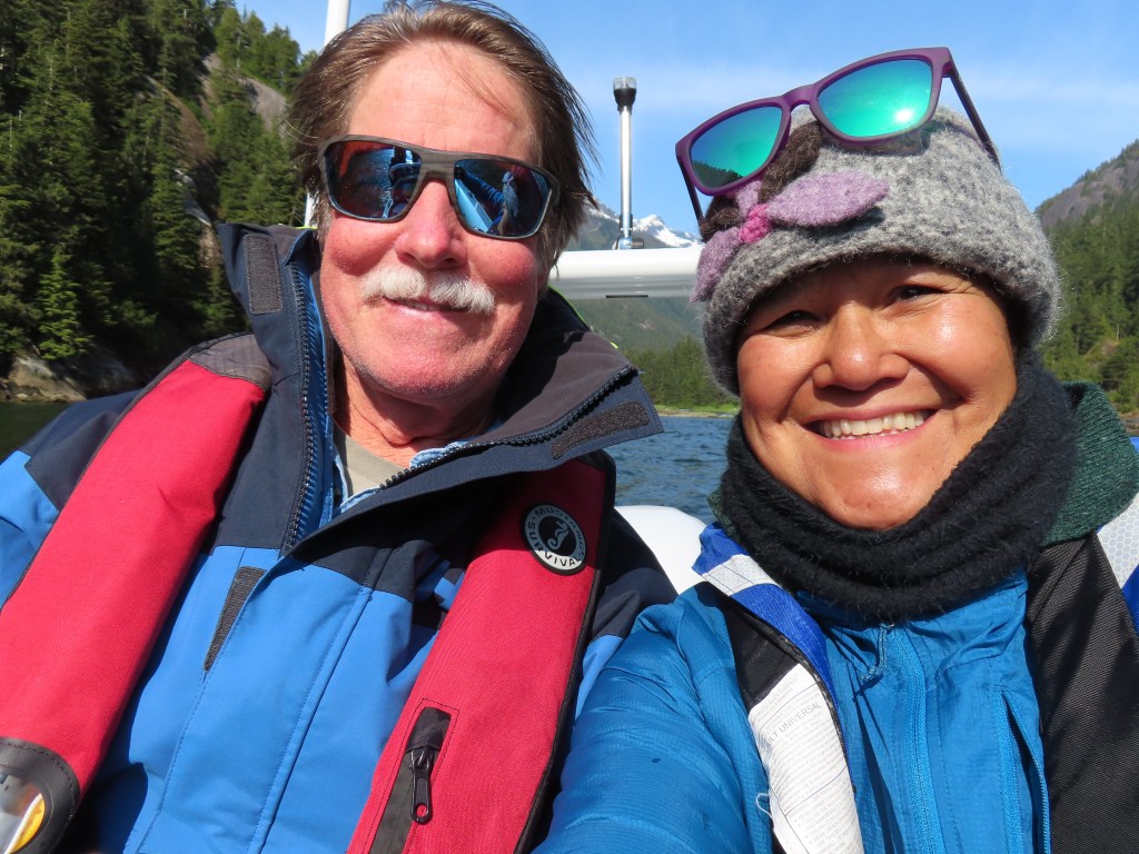 Brad and Laie arrived with the sunshine, and clear skies allowed us a view of distant snow covered peaks. Petersburg looked postcard pretty. The fair weather was not going to last, so we took advantage of it and walked to Hungry Point, then came back to have halibut tacos on the patio at Inga’s before returning to prep the boat for Sunday’s departure to Thomas Bay.