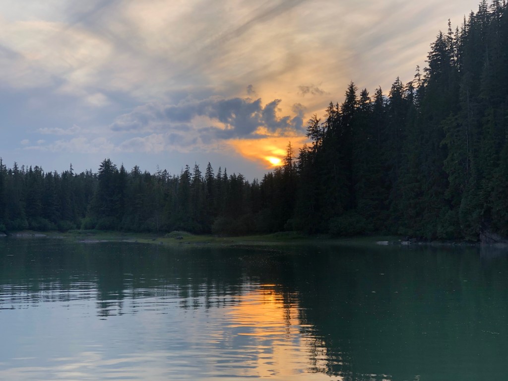 Monday dawned cold and cloudy. It was 48 degrees when we got up; thank goodness for the diesel heater, which takes the edge off the damp chill. Originally planning a long cruise north to Tracy Arm, we changed our minds and diverted to Sandborn Canal, on the recommendation from a Petersburg native. Right now the crock pot is slowly making dinner and we are content at anchor on this drizzly, overcast day.