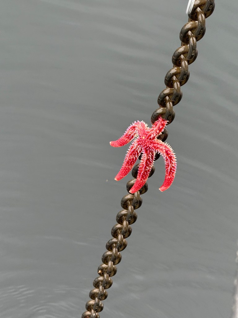 Excited to get to Sitka and secure moorage, we weighed anchor early the next morning. For some reason, sea stars find a home in the anchor chain while it lies on the seabed floor. At first surprising when discovering them, we’ve grown accustomed to their presence when we pull up the anchor, and perform careful extraction to minimize harm as they fall back into the sea.