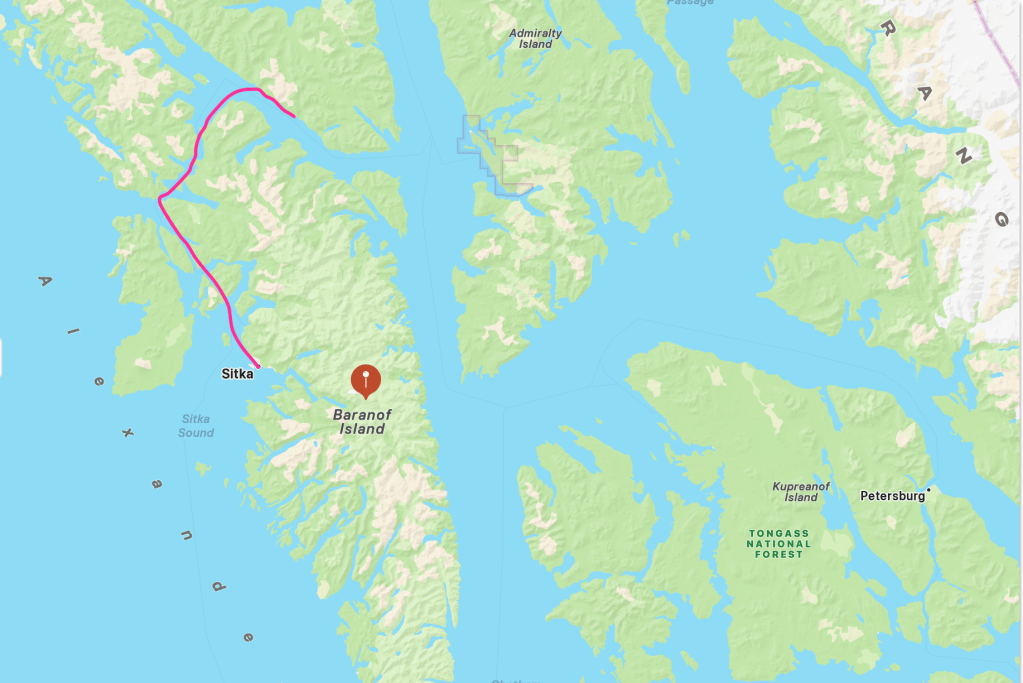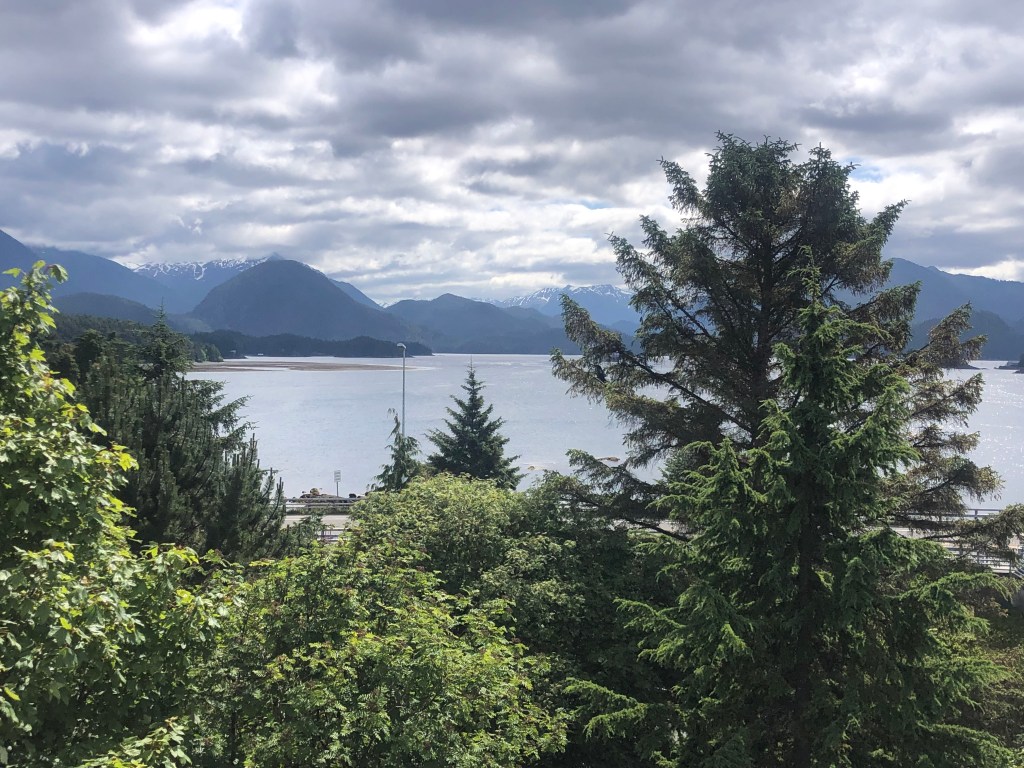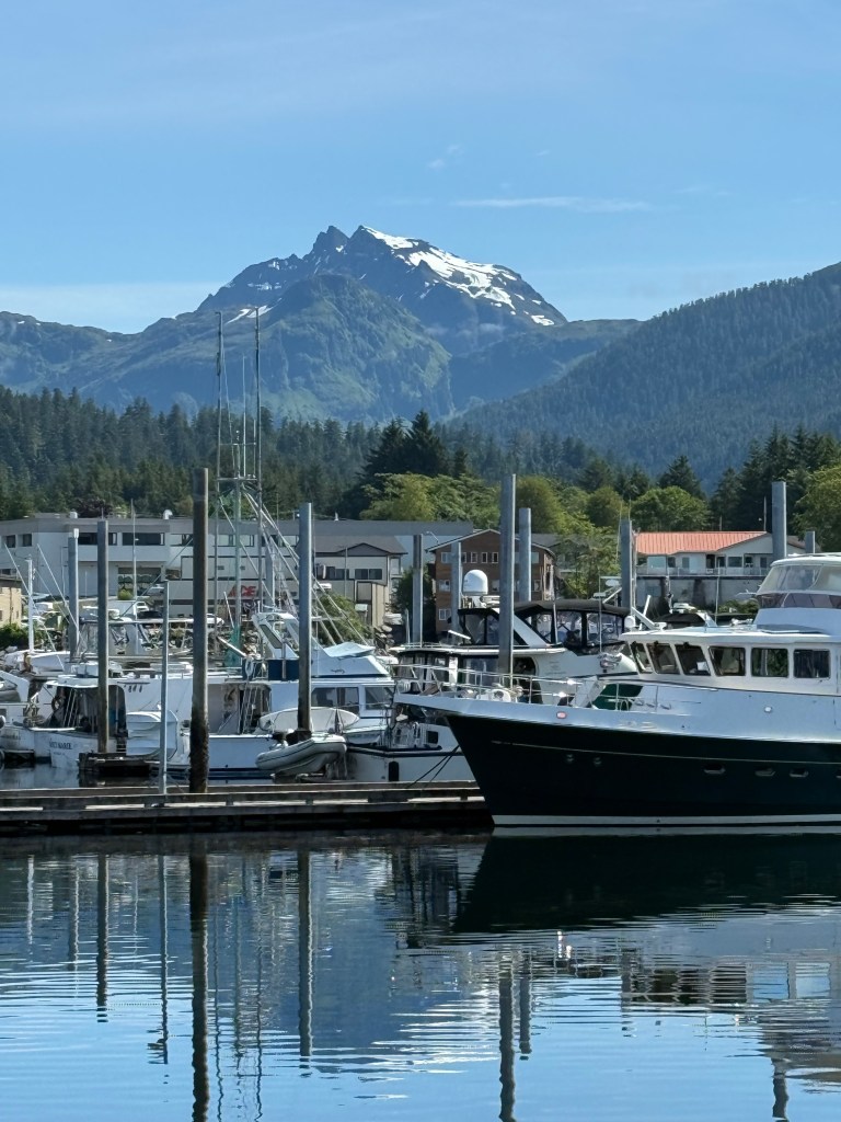 Monday was only the seventh day of sunshine seen in Sitka since May first; everyone wanted to be outdoors! The town is stunning in daylight, with blue skies and puffy white clouds complementing the dark blue sea and snow-sprinkled mountains. Nearby Castle Hill, once home to Tlingit, is where Russia transferred Alaska to the United States, and provides a panoramic view of Sitka Sound. Just outside of town is Fortress of the Bear, a former paper mill that now houses orphaned cubs. Their mission is to provide sanctuary and protection for young bears who lost their mother and would otherwise die. The animals are treated with care and respect, their surroundings large and thoughtful. Still, it’s a bit heartbreaking to see these imposing creatures in captivity.